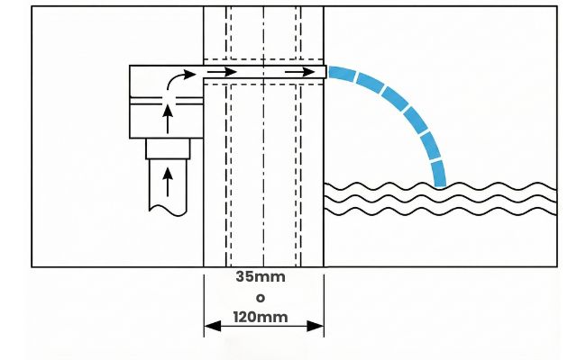 Optimiza la instalación con nuestras cascadas laminares de lengüeta larga (12 cm) o corta, diseñadas con entrada inferior para empotrar fácilmente en muros estrechos. Una solución versátil que garantiza una integración discreta y elegante en cualquier proyecto arquitectónico de piscina.
