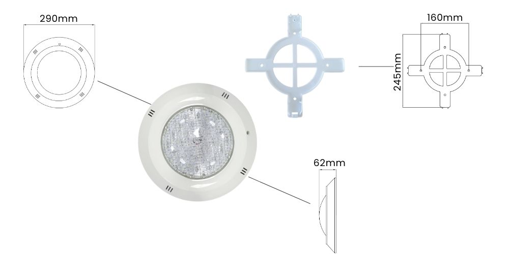 Gracias a su tamaño y su cruceta estándar, los focos Basic permiten renovar instalaciones antiguas sin obras ni adaptadores. Sus perforaciones coinciden con las de los tradicionales focos halógenos, facilitando un reemplazo rápido y sin complicaciones: basta con retirar el foco anterior y fijar el nuevo. Esta compatibilidad los convierte en una alternativa moderna, eficiente y muy práctica para quienes desean mejorar la iluminación de su piscina de forma sencilla.