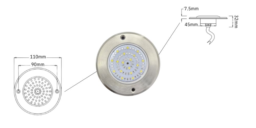 Diseñado para quienes exigen lo mejor en estilo, resistencia y tecnología, el foco Ultrathin de Acero eleva el estándar de iluminación subacuática. Gracias a su marco fabricado en Acero Inoxidable Marino AISI 316, una aleación de alta calidad utilizada en entornos náuticos por su extraordinaria resistencia a la corrosión, este modelo garantiza una durabilidad excepcional, incluso en piscinas salinas o ambientes especialmente agresivos. Una gama muy completa con diferentes tamaños disponibles (Ø28 - Ø16 - Ø11 cm).