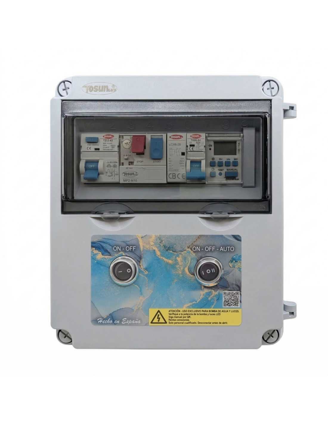 Guardamotor Ajustable: Este cuadro incluye un guardamotor seleccionable, asegurando que el amperaje de la bomba de filtración sea adecuado y previniendo sobrecargas.